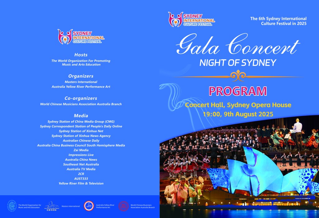 The grand finale of the 6th Sydney International Culture Festival — the “Night of Sydney” Awards Gala Concert — concluded on the evening of August 9th at the Sydney Opera House. More than twenty art troupes from China, Australia, New Zealand, Tonga, and Germany joined forces on stage, presenting a rich variety of choral, instrumental, and dance performances, and delivering a cross-border cultural feast to an audience of over 2,000.